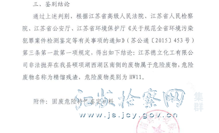 经环保局鉴别鉴定,倾倒在硕项湖边的化学废料系危险废物