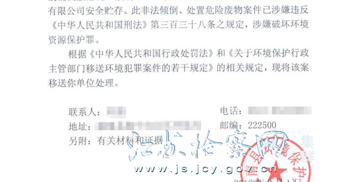 灌南县环境保护局案件移送函