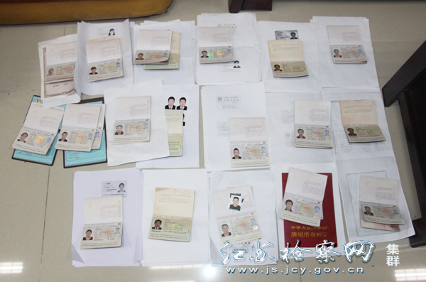 警方搜查到的陆虎等人办理的假签证等各种证件